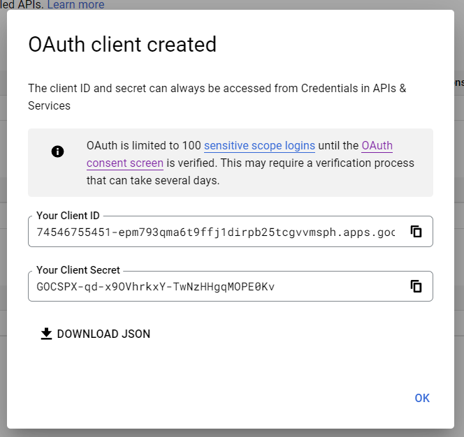 - Save all steps and finish the registration on the OAuth consent screen. Then, change the Publishing status from Testing to In production.